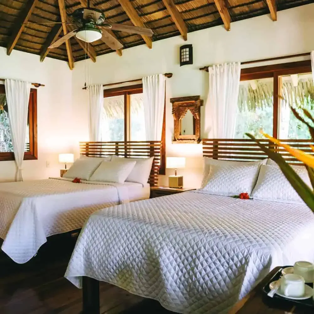 Amapola offers cozy luxury with one king and a queen bed, Wi-Fi, AC, and tranquil amenities like a snorkel pool and jacuzzi. Enjoy an all-inclusive stay with daily meals, housekeeping, and easy access to adventure.